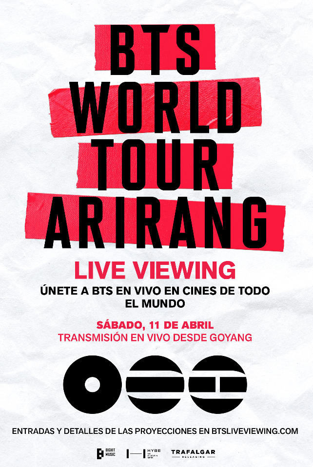 Con un espectacular diseño del escenario en 360 grados, el espectáculo ofrece una experiencia inmersiva que coloca al público en el centro mismo del show. Disfruta de los momentos más electrizantes del esperado regreso artístico de BTS en los cines de todo el mundo, el 11 de abril desde Goyang y el 18 de abril desde Tokio.